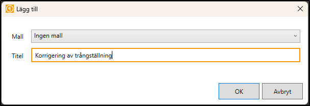 Välj eventuell mall (läs mer om mall nedan). Ange Titel och tryck [OK] för att spara.