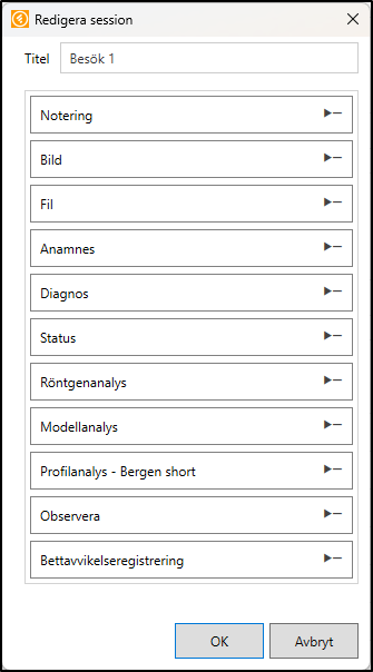 Det går att kollapsa en session för att få mer utrymme på skärmen för visning av aktuella sessioner. Det kan användas för att dölja redan utförda besök som görs i början av behandlingen men inte är nödvändiga att ta del av vid varje efterföljande besök.