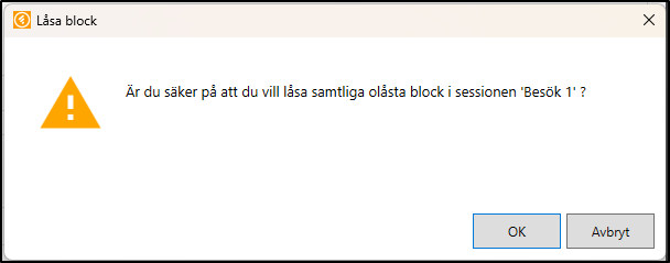 Tryck [OK] för att låsa samtliga block i sessionen.