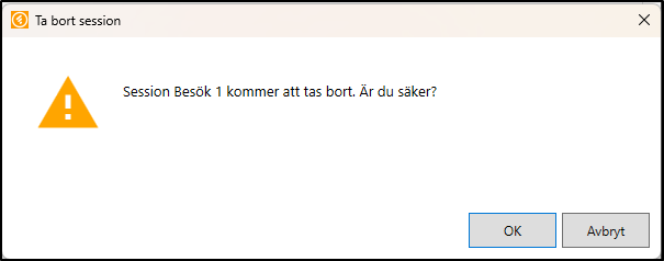 Samtliga block och inmatade värden i sessionen tas bort och kan inte återställas. En session som innehåller ett låst block går inte att radera.