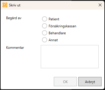 Knapp [Skriv ut] används för att skriva ut från ortodontijournalen.