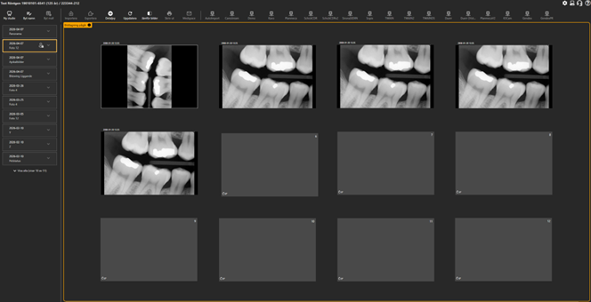 När en annan användare utför bildtagning i samma patientstudie är studien låst. Om en studie öppnas där bildtagning pågår markeras studien med en orange ram. I det övre vänstra hörnet visas meddelandet "Bildtagning pågår".