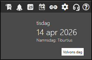 På Startsidan längst till höger visas förutom dagens datum även vem/vilka som har namnsdag. När muspekaren förs över namnet framgår även vilken temadag det är.